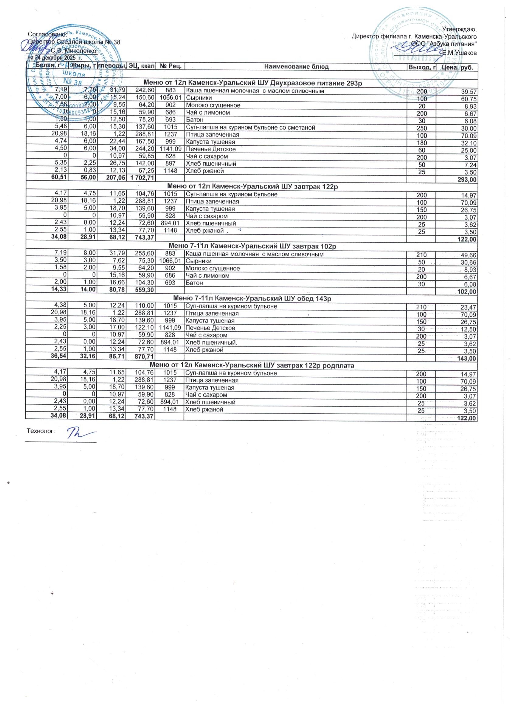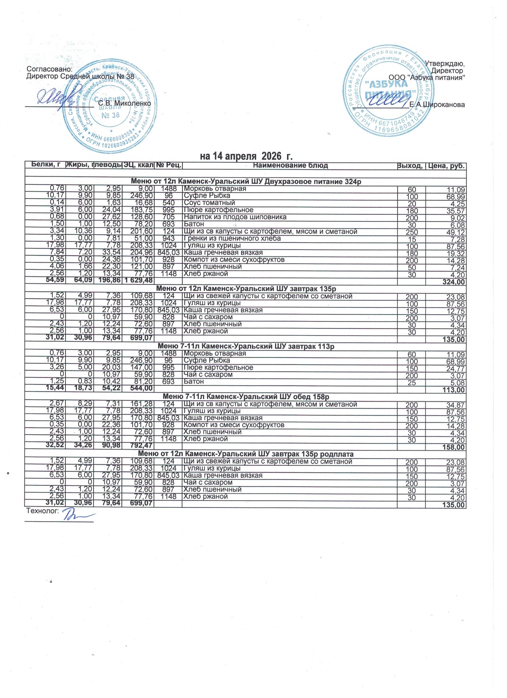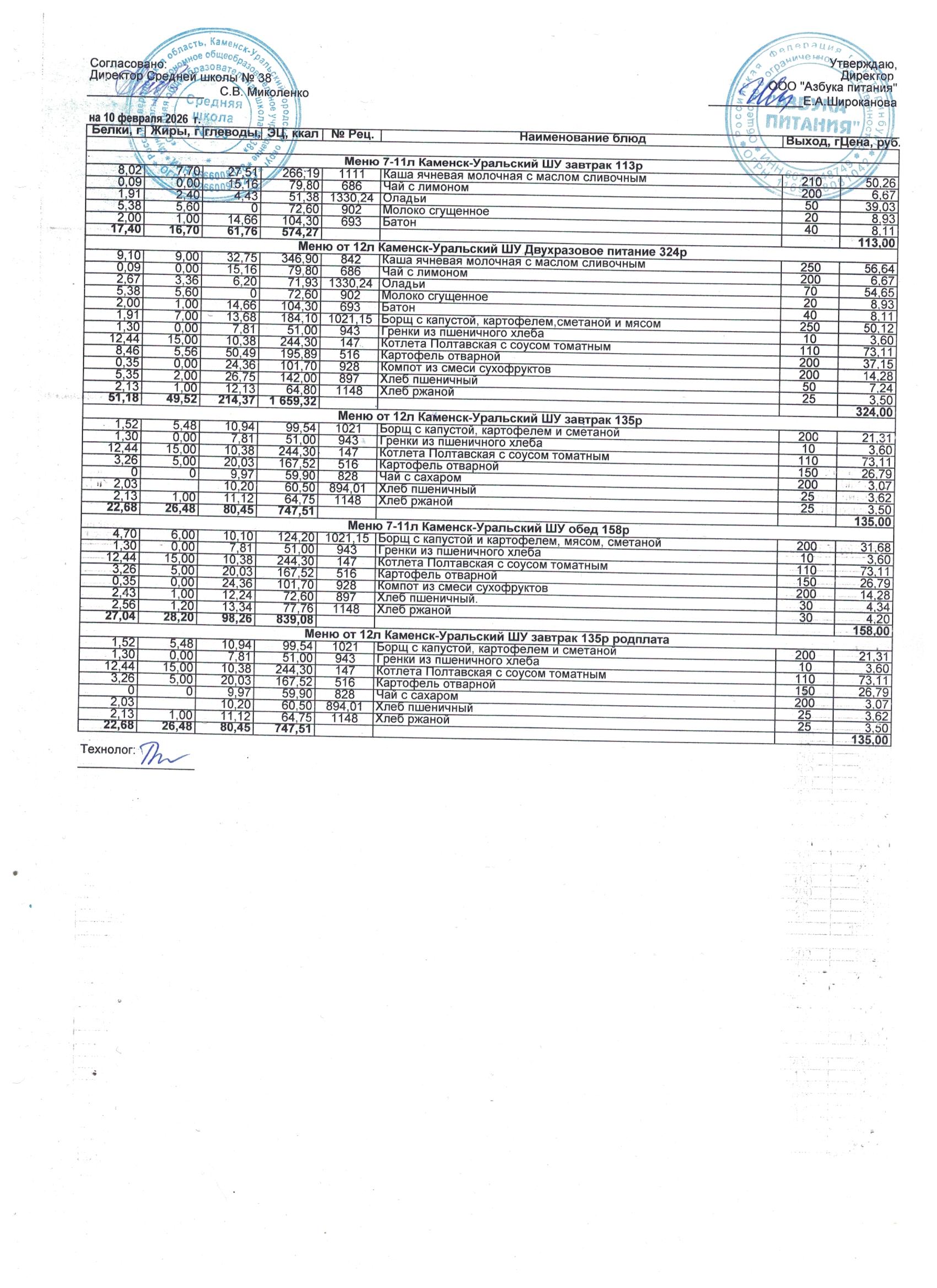 МЕНЮ ЕЖЕДНЕВНОГО ГОРЯЧЕГО ПИТАНИЯ