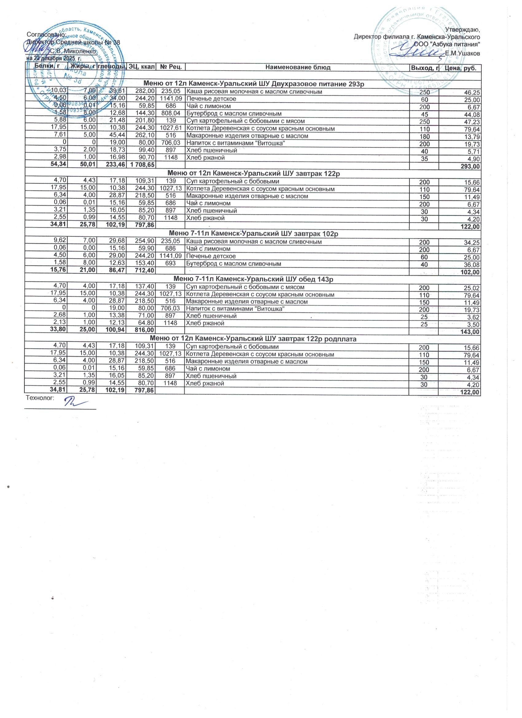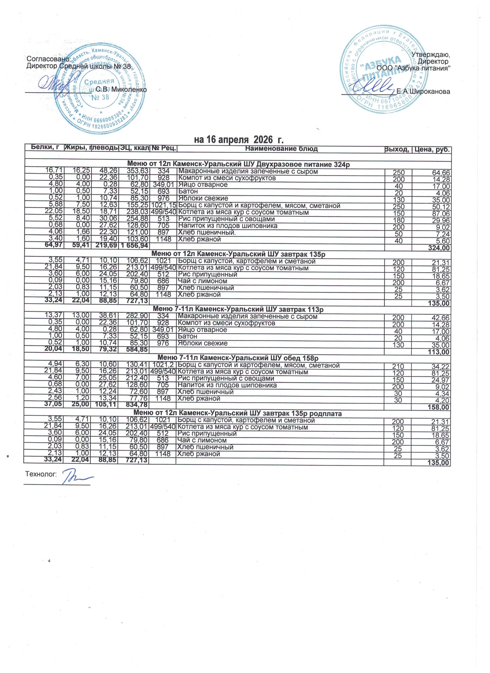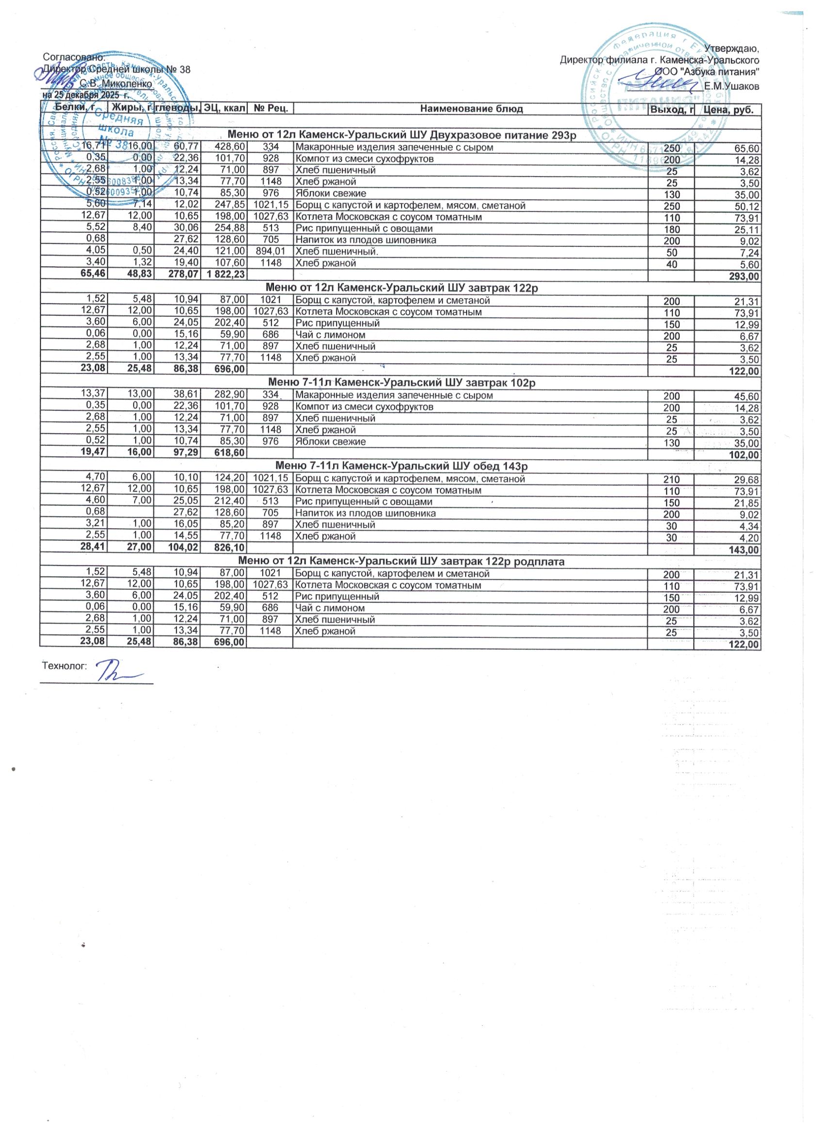 МЕНЮ ЕЖЕДНЕВНОГО ГОРЯЧЕГО ПИТАНИЯ