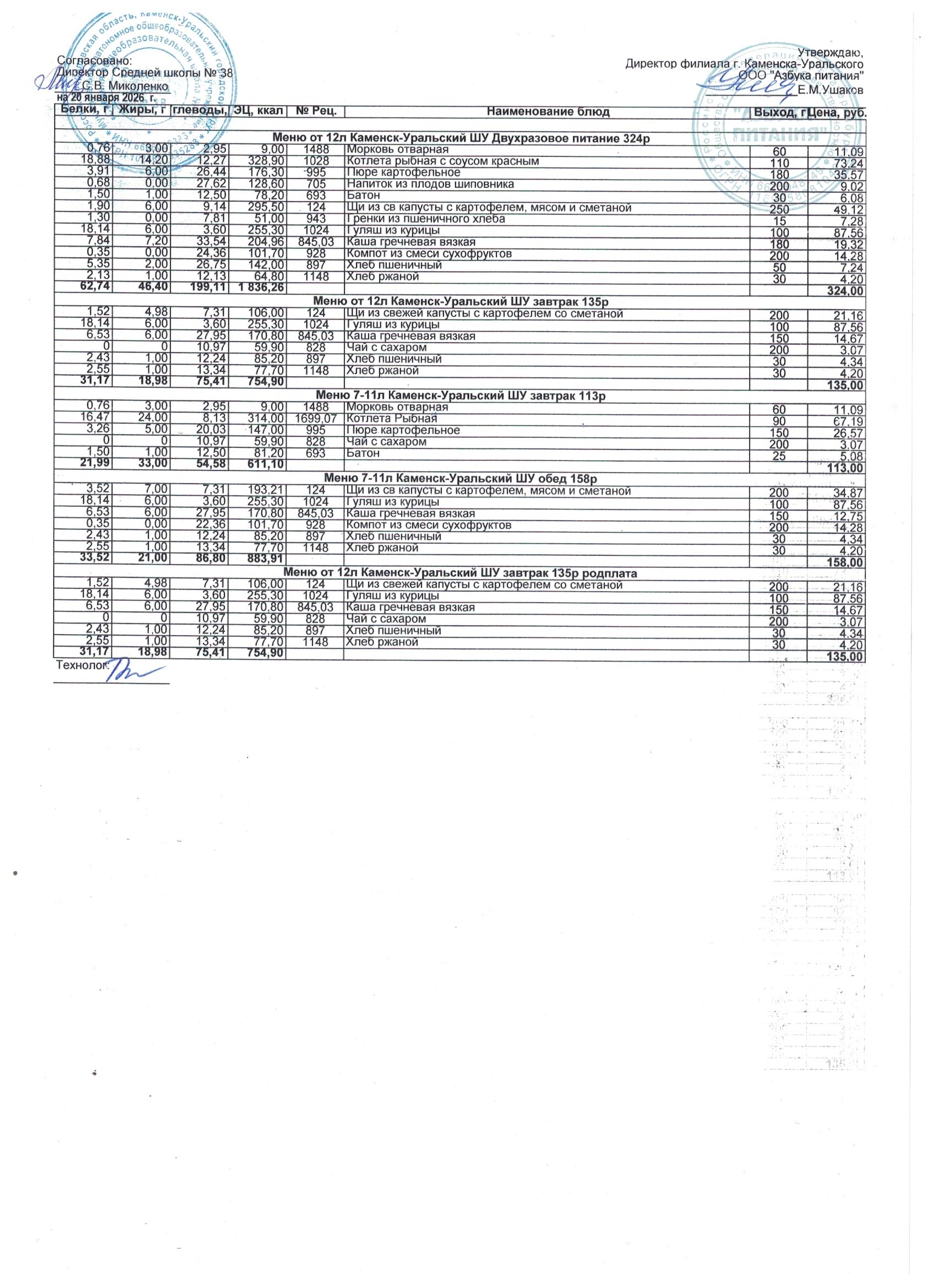 МЕНЮ ЕЖЕДНЕВНОГО ГОРЯЧЕГО ПИТАНИЯ