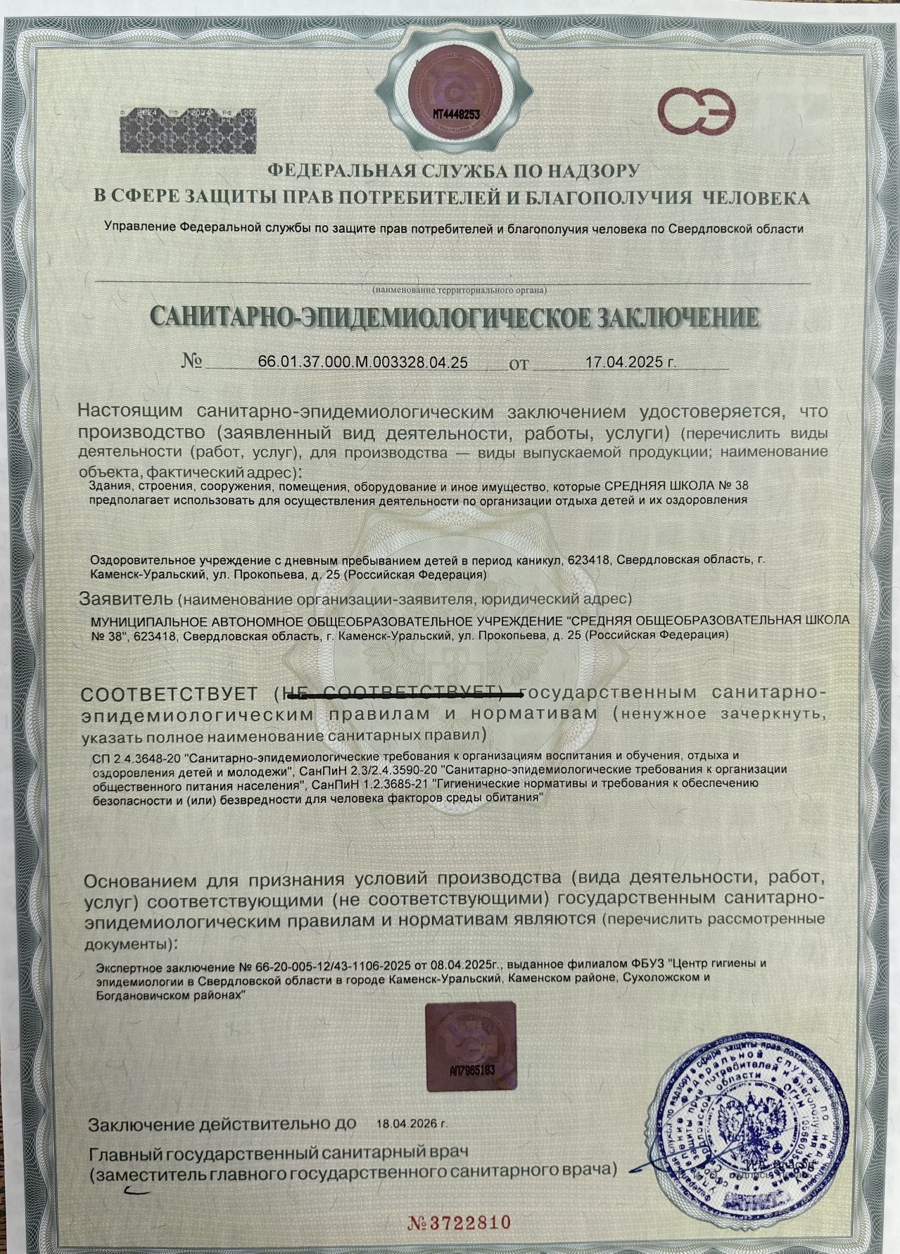 Дата ввода в эксплуатацию здания Средней школы №38, организации отдыха и оздоровления детей - 1992 год. Капитальный ремонт не проводился.