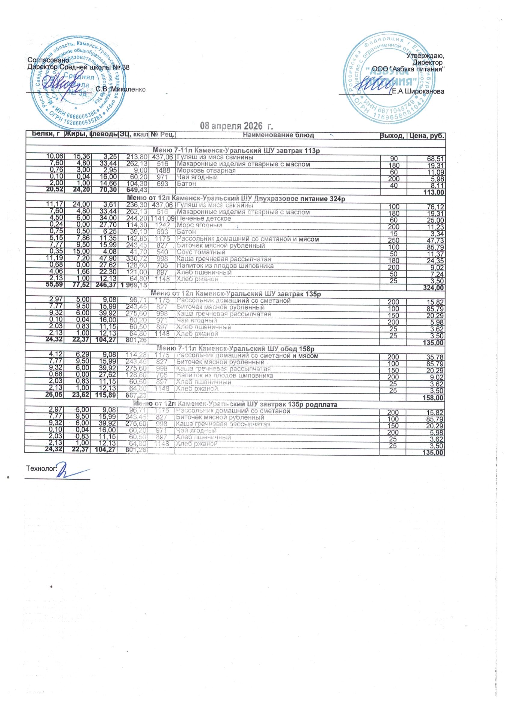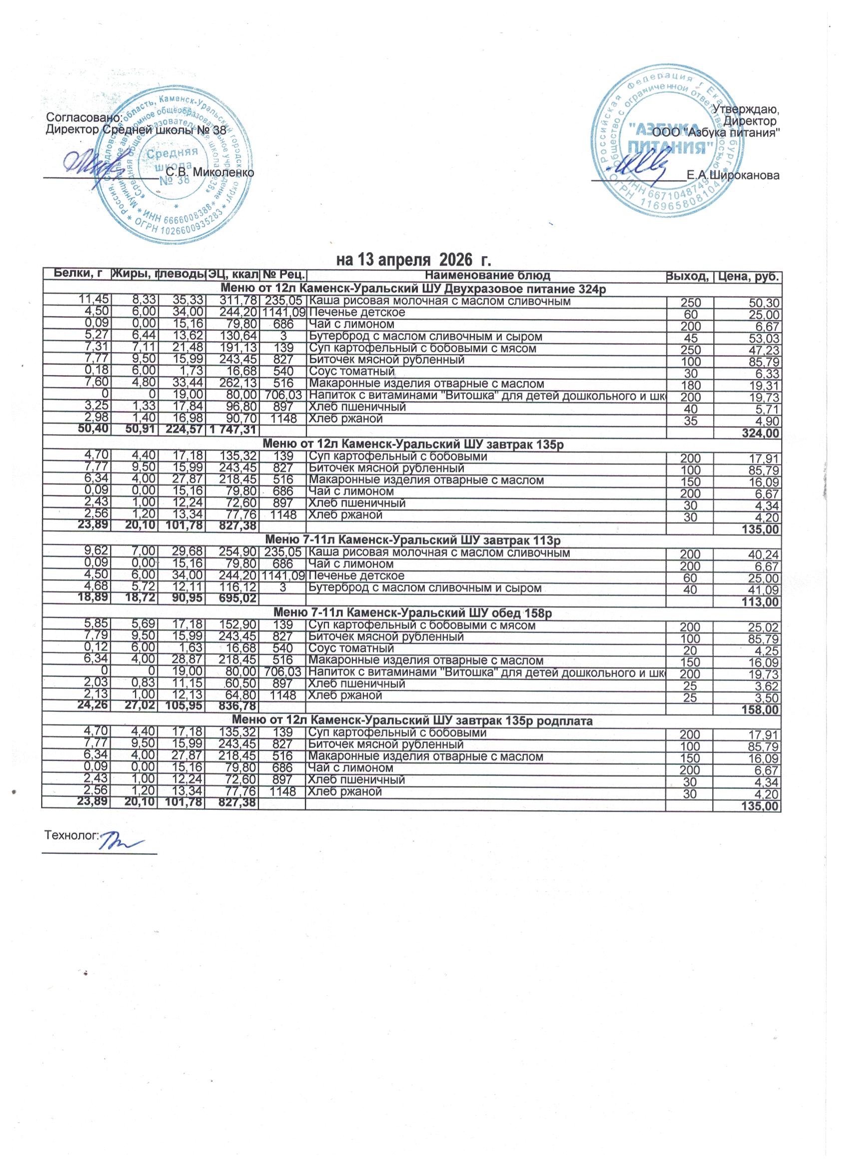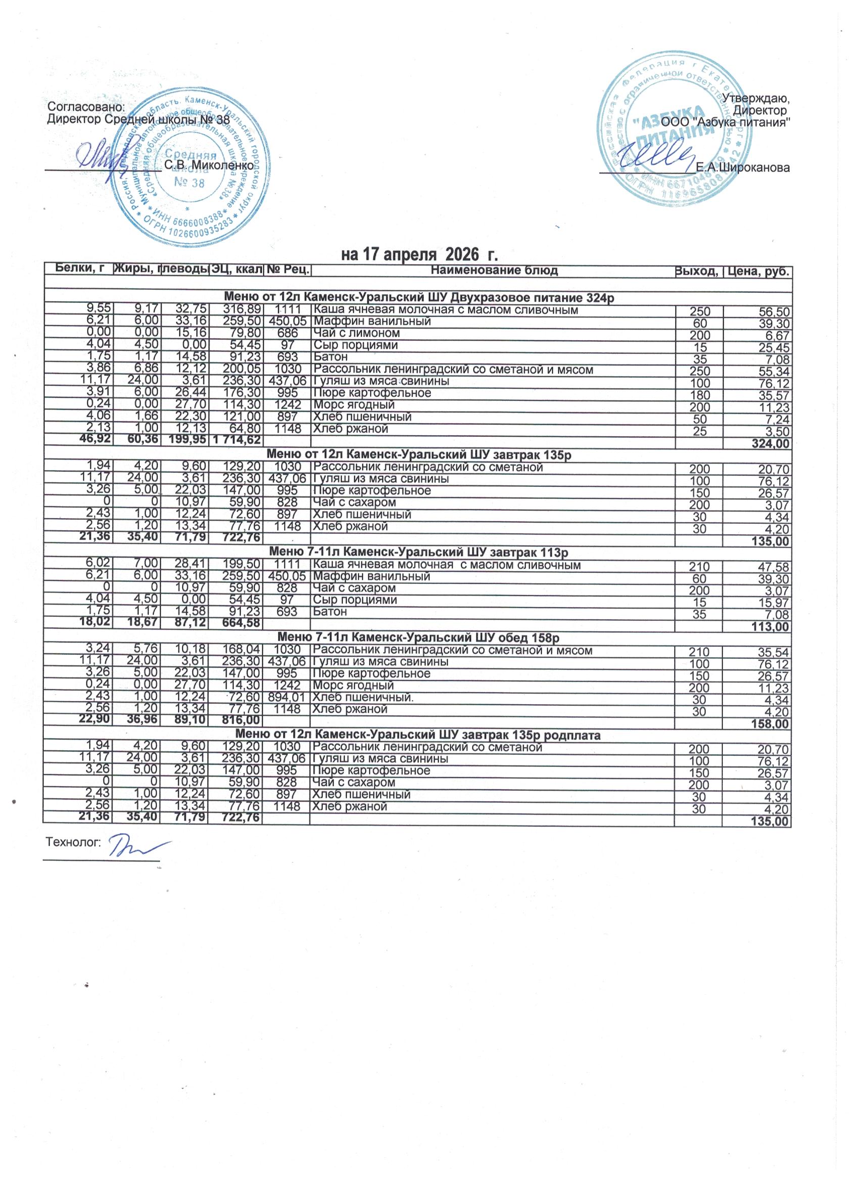 МЕНЮ ЕЖЕДНЕВНОГО ГОРЯЧЕГО ПИТАНИЯ