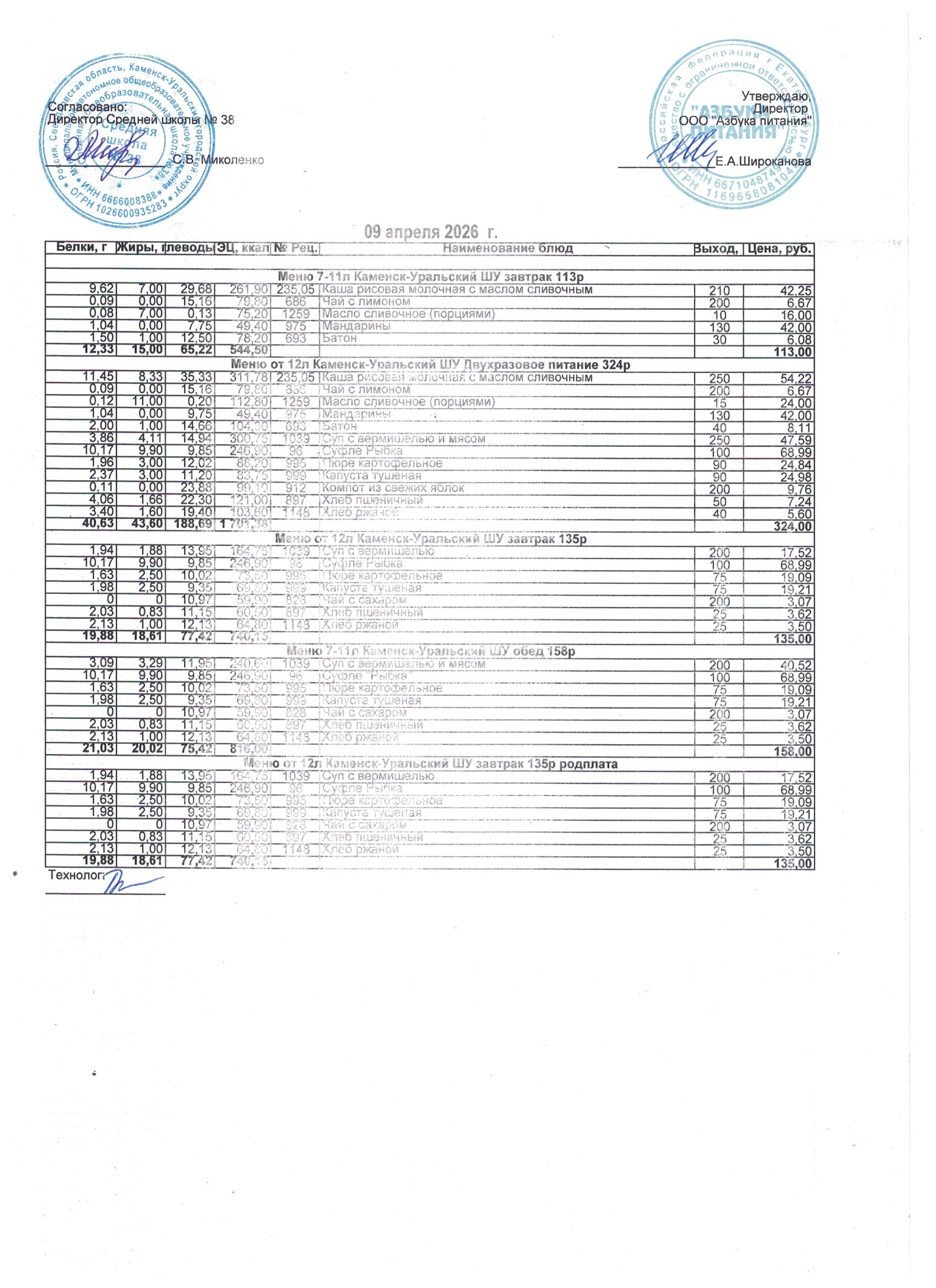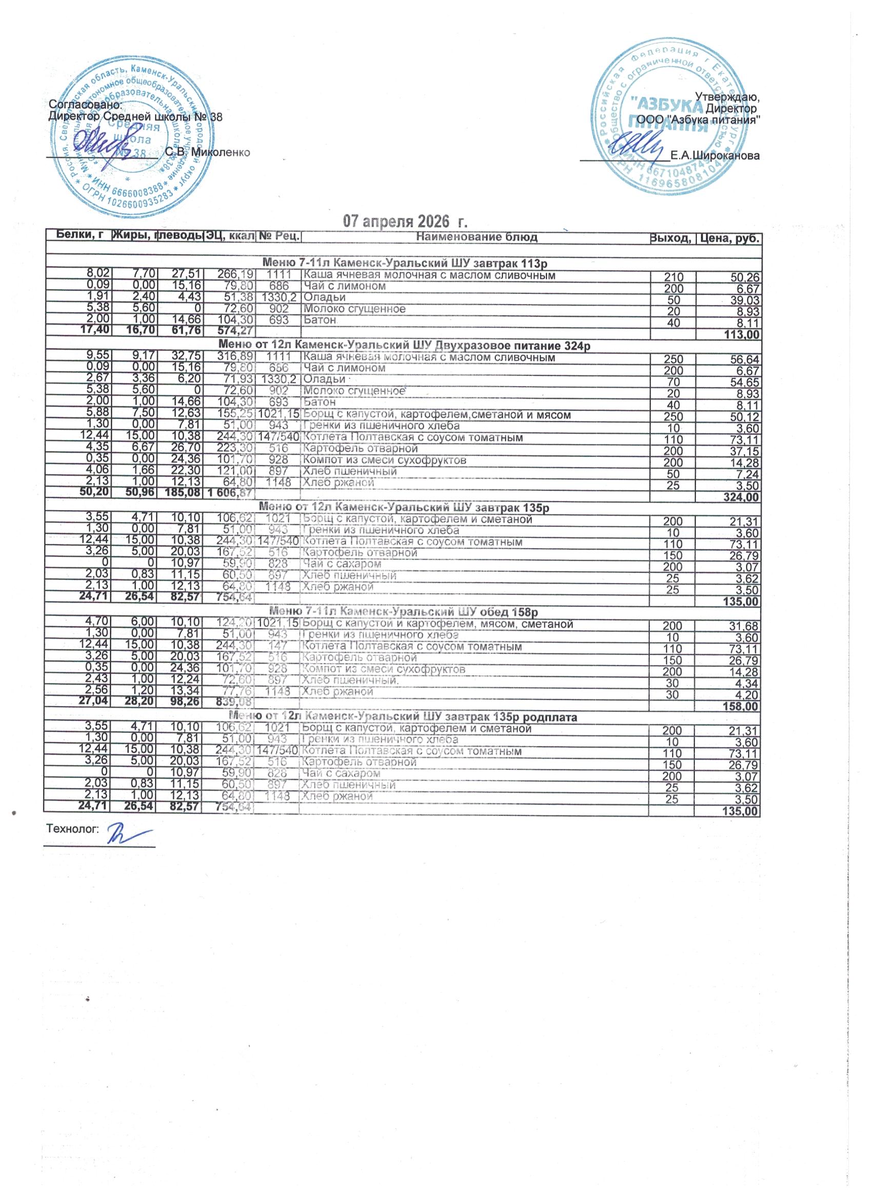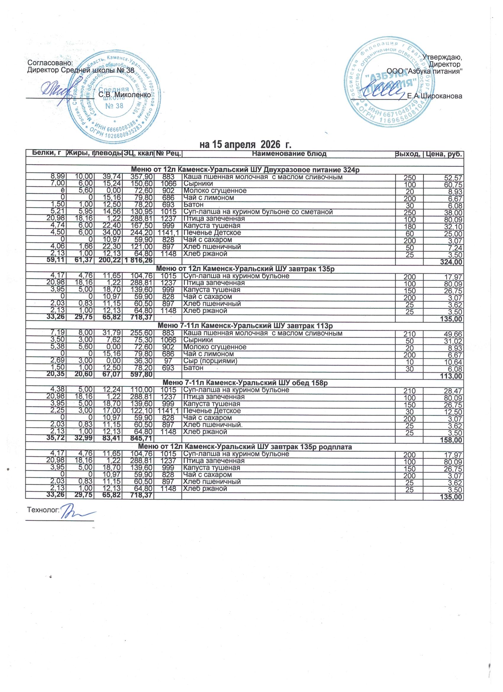 МЕНЮ ЕЖЕДНЕВНОГО ГОРЯЧЕГО ПИТАНИЯ