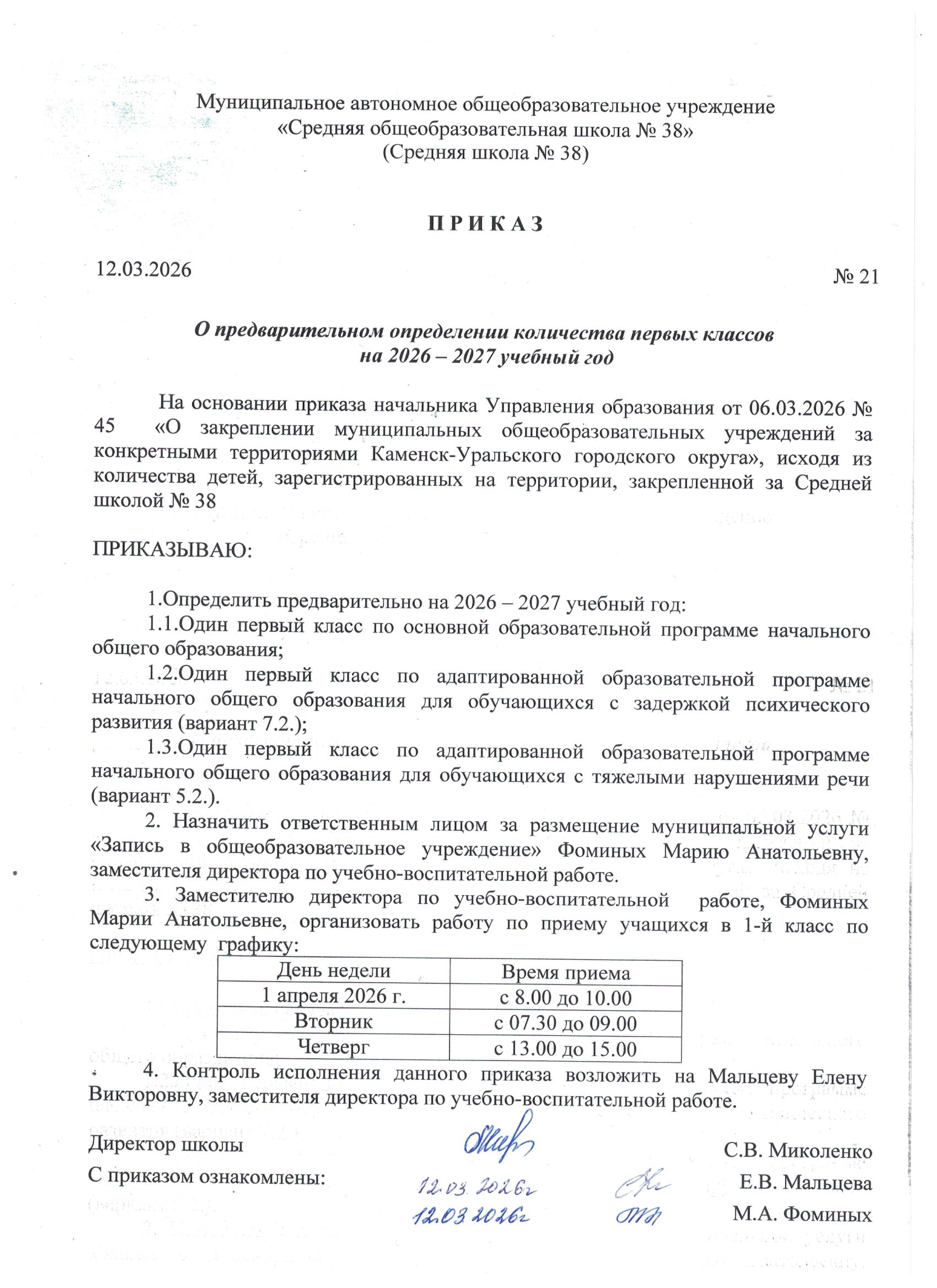 Администрация Средней школы № 38 информирует Вас о том, что в соответствии с «Порядком приема граждан на обучение по образовательным программам начального общего, основного общего и среднего общего образования, утвержденного приказом Министерства просвещения Российской Федерации от 2 сентября 2020 г. № 458 (в ред. приказа Минпросвещения России от 30.08.2023 № 642), «Правилами приема на обучение в муниципальное автономное общеобразовательное учреждение "Средняя общеобразовательная школа № 38», утвержденными приказом директора Средней школы от 10.03.2025 № 35.